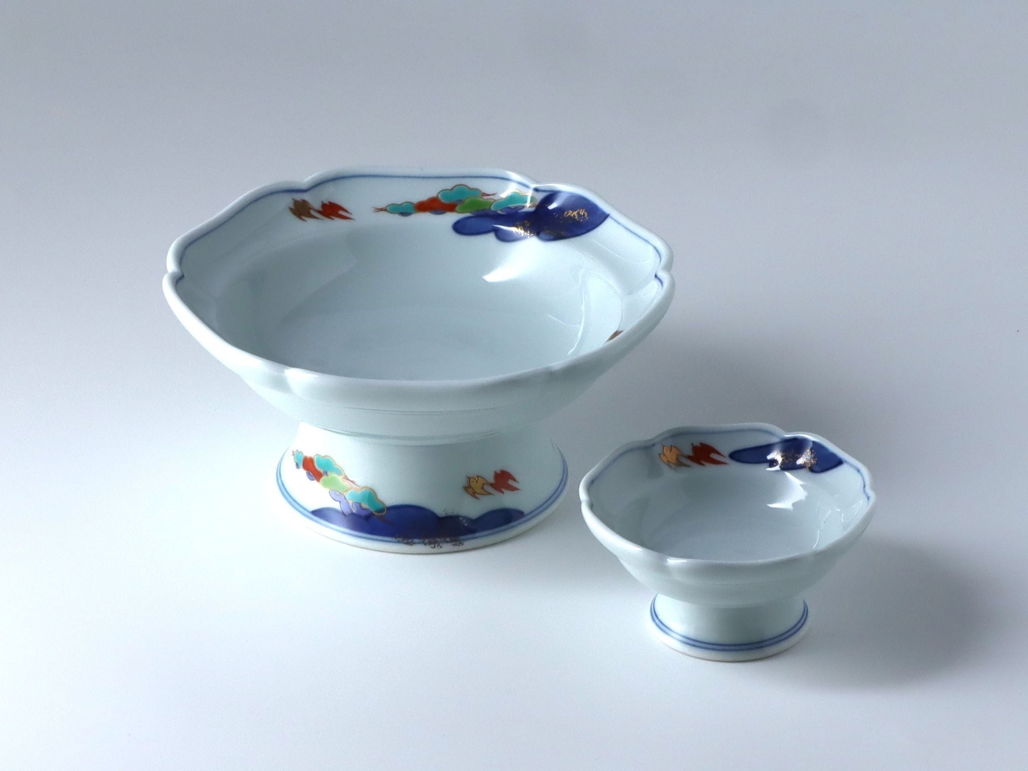 高台向付 共ちょこ付 染錦千鳥絵